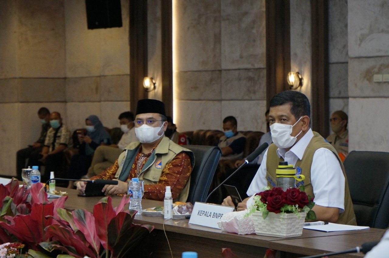 Kepala Badan Nasional Penanggulan Bencana (BNPB) Republik Indonesia, Letjen TNI Doni Monardo saat kunjungannya ke Kepulauan Bangka Belitung (Babel) dalam Rapat Koordinasi (Rakor) Satuan Tugas Penanganan Covid-19 Pembahasan Upaya Percepatan Penanganan Covid-19, menyampaikan masukan tentang pemanfaatan lahan reklamasi wilayah bekas tambang timah untuk dijadikan program pengembangan tanaman sagu dari Babel di Ruang Pasir Padi, Kantor Gubernur Babel, Kamis (18/03/2021).