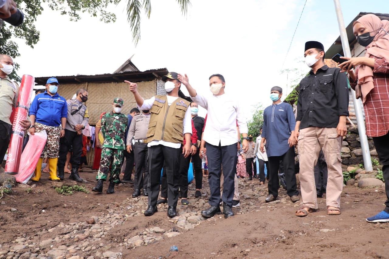Di sana, Ilham Syah Azikin dan Andi Sudirman Sulaiman melihat langsung bekas aliran sungai yang meluap. Rumah dan lahan pertanian warga jadi imbas bencana akibat intensitas hujan yang tinggi itu.