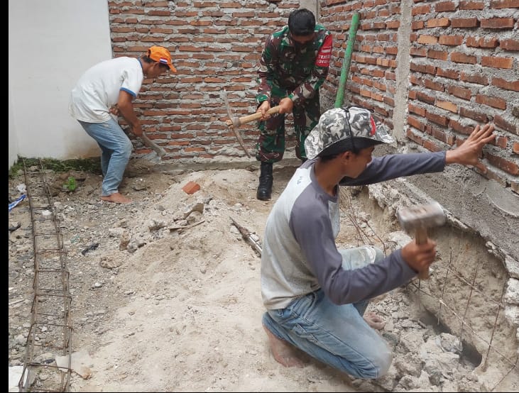 “Danramil 2306/Mancak memberi tugas pada anggotanya Babinsa Desa Balekambang serta Babinsa Desa Pasir Waru untuk melakukan kegiatan Karbak membantu pembangunan rumah warga di masing-masing Kampung Desa Kecamatan Mancak,” ucap Kapten inf Dodik Hardianto.