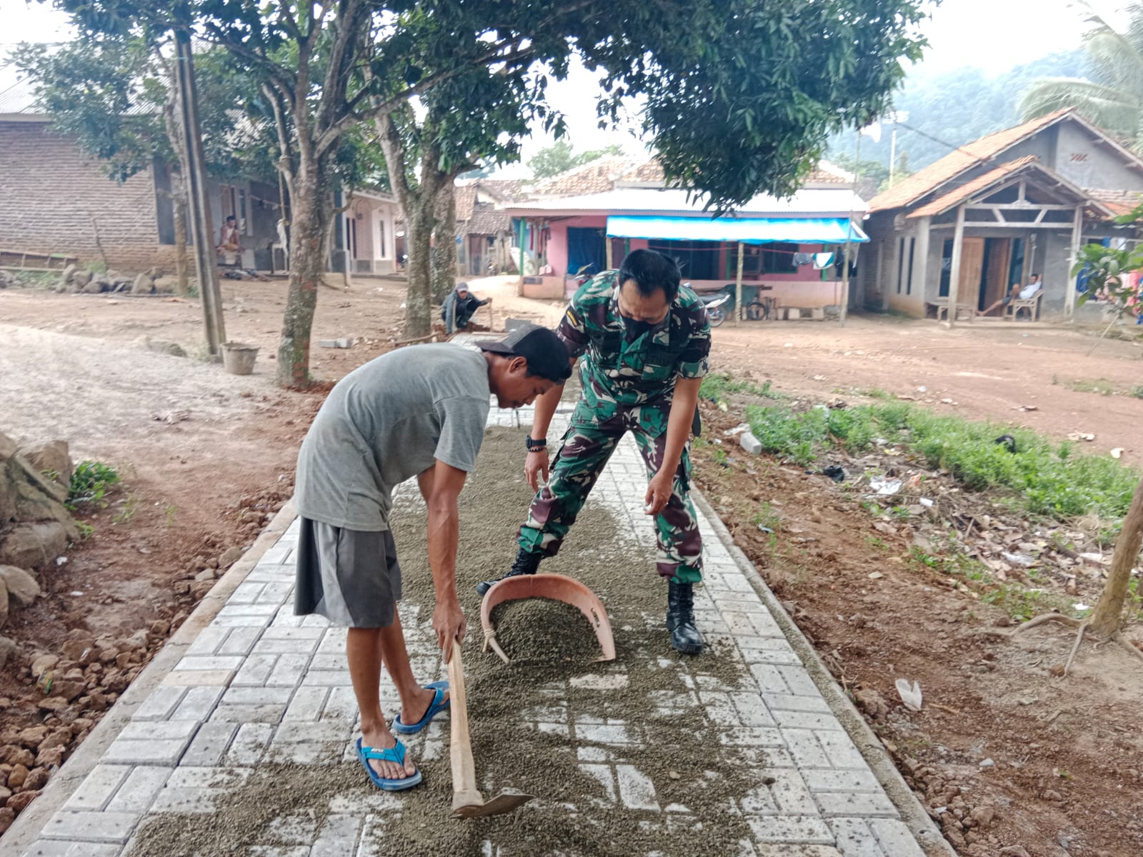“Adapun Babinsa Desa Ciwarna yang mendapatkan tugas dari Danramil Mancak memaparkan dalam melaksanakan giat Karbak dengan warga dalam rangka membantu pemasangan paving blok bertempat di Kampung Tempeyen,” papar Babinsa Sertu Joni Yetman.