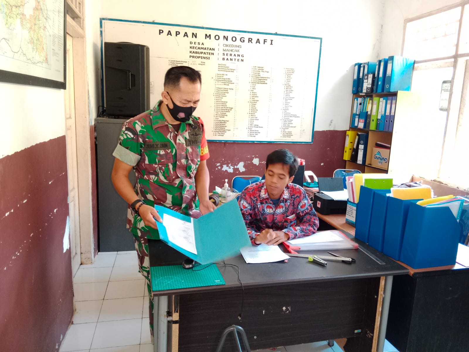 “Dimana Babinsa Desa Ciwarna yang ditugaskan lansung Danramil Mancak mengungkapkan dalam melakukan kegiatan Puan Ter bersama appem desa dalam rangka giat pendataan wilayah yang rawan bencana alam bertempat di Kantor Desa Ciwarna,” ungkap Babinsa Sertu Joni Yetman.