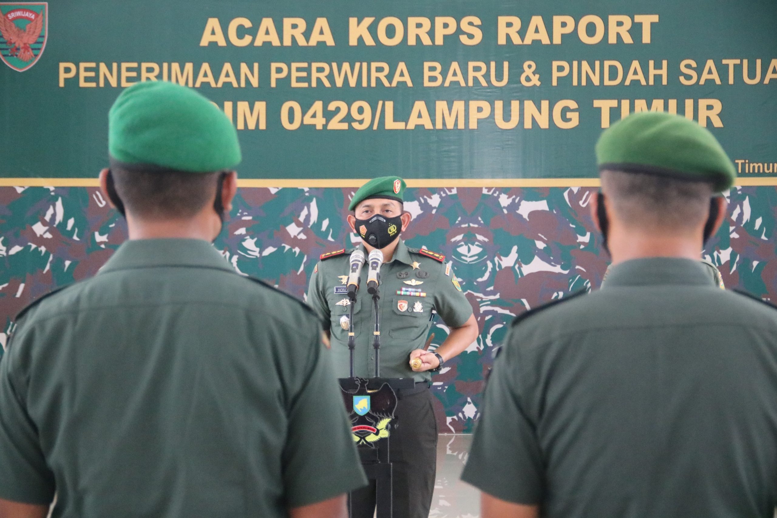 Sekilasindonesia.id ||LAMPUNG TIMUR – Acara Korps Raport penerimaan dan pindah Satuan di pimpin langsung Dandim 0429/Lamtim Letkol Czi. Indra Puji Triwanto, S.H, berlangsung di Aula Gatot Soebroto Makodim, Jl. Soekarno-Hatta, Mataram Marga, Kecamatan Sukadana, Kamis (28/7/2022).