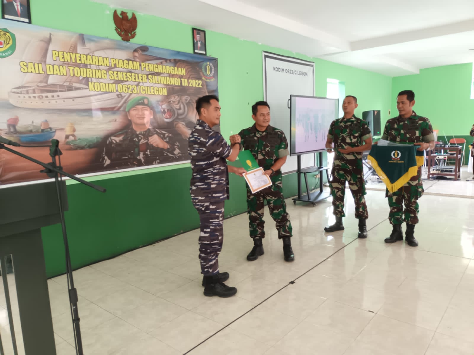 Penyerahan Piagam penghargaan Saill dan Touring Sekeseler Siliwangi TA 2022 Kodim 0623/Cilegon yang diikuti kurang lebih 60 orang sebagai penanggung jawab Letkol Inf Ari Widyo Prasetyo, S.Sos Dandim 0623/Cilegon.