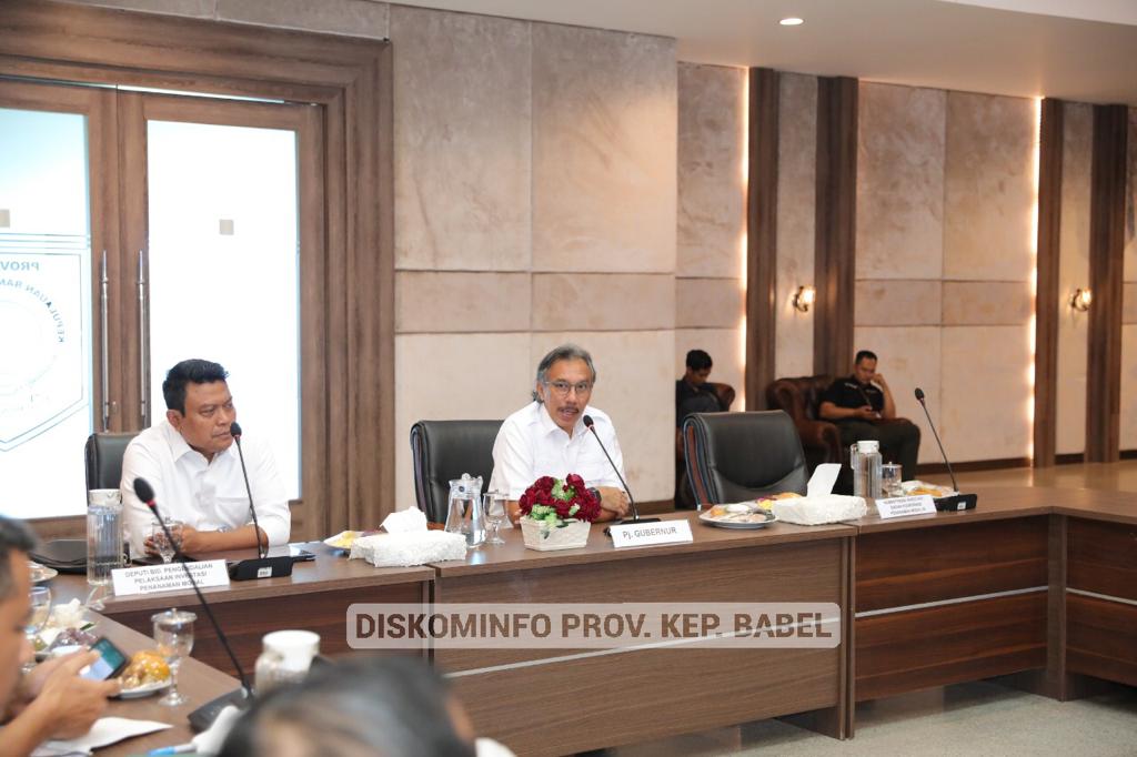 PANGKALPINANG – Penjabat (Pj) Gubernur Kepulauan Bangka Belitung (Kep. Babel) Ridwan Djamaluddin memimpin Rapat terkait Pencapaian Target Realisasi Investasi dan Hilirisasi Logam Timah di Prov. Kep. Babel, Selasa (10/1/2023) di Ruang Pasir Padi Kantor Gubernur Kep. Babel.