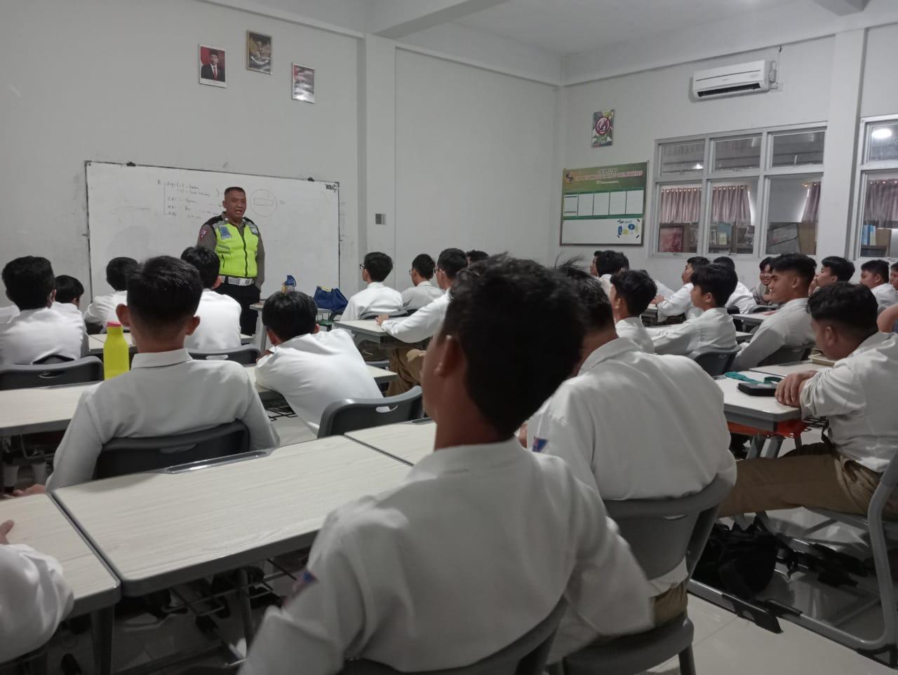 Sosialisasi ini diikuti perwakilan siswa, saat sosisalisasi berlangsung seluruh siswa memperhatikan dengan baik apa yang disampaikan oleh Satlantas Polres Metro.