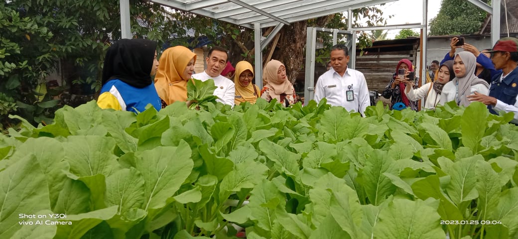 Dalam kesempatan ini juga Monica Haprinda selaku ketua TP. PKK kota Pangkalpinang sekaligus panen sayur sawi yang ditanam oleh anggota TP.PKK kelurahan Asam. ( Isk)
