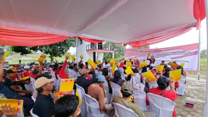 Sekilasindonesia.id | LAMPUNG TENGAH – Anggota DPRD Provinsi Lampung Fraksi PDI Perjuangan, Ni Ketut Dewi Nadi, ST gelar Sosperda no 1 tahun 2019 tentang fasilitasi penyalah gunaan narkotika, psikotropika dan zat adiktif lainya. Narasumber yang hadir, bapak I Komang Koheri,SE (DPR RI) dan bapak kapolsek seputih raman iptu Admar, spd. Bertempat di kebun marhaen RT.004 kampung Rama Dewa 1 Kecamatan Seputih Raman Kabupaten Lampung Tengah. (28/1/2023).