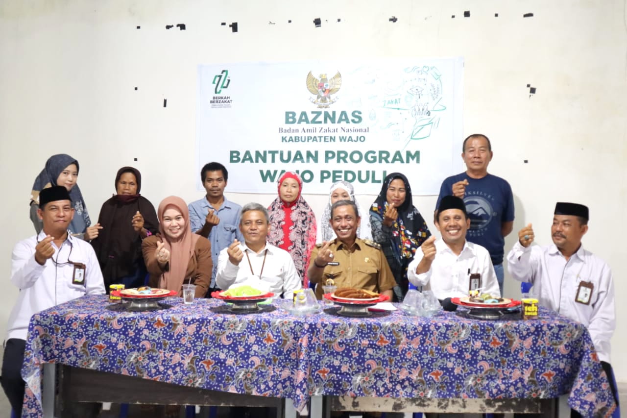 Amran Mahmud menyerukan hal ini saat menyerahkan secara simbolis bantuan program Wajo Peduli yang digelar Badan Amil Zakat Nasional (Baznas) Wajo di Kantor Baznas Wajo, Senin (30/1/2023).