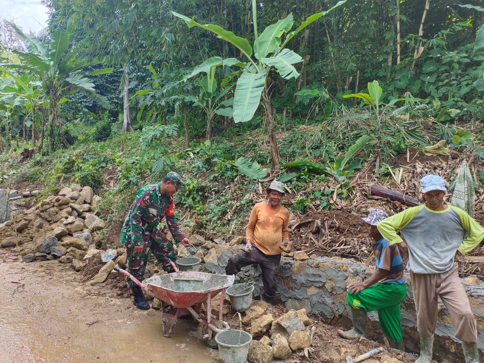“Adapun Danramil 2302/Bojonegara memberi tugas pada anggotanya Babinsa Koptu Sukarma dan Babinsa Pelda S Sambo untuk giat Karbak membantu pembangunan pemasangan pondasi dan membantu pembangunan rumah masyarakat di masing-masing Desa yang sudah ditentukan,” terang Mayor Caj(K) Ana Dahliana.