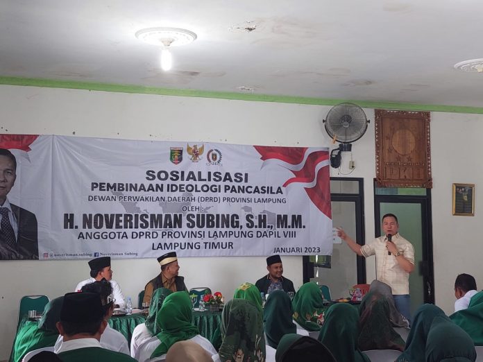 Hal itu dikatakan Wakil Ketua Komisi III DPRD Lampung H. Noverisman Subing SH MM saat memberikan sosialisasi Pembinaan Ideologi Pancasila bagi tokoh masyarakat di Kecamatan Sukadana, Lampung Timur, Selasa (31/01/23).