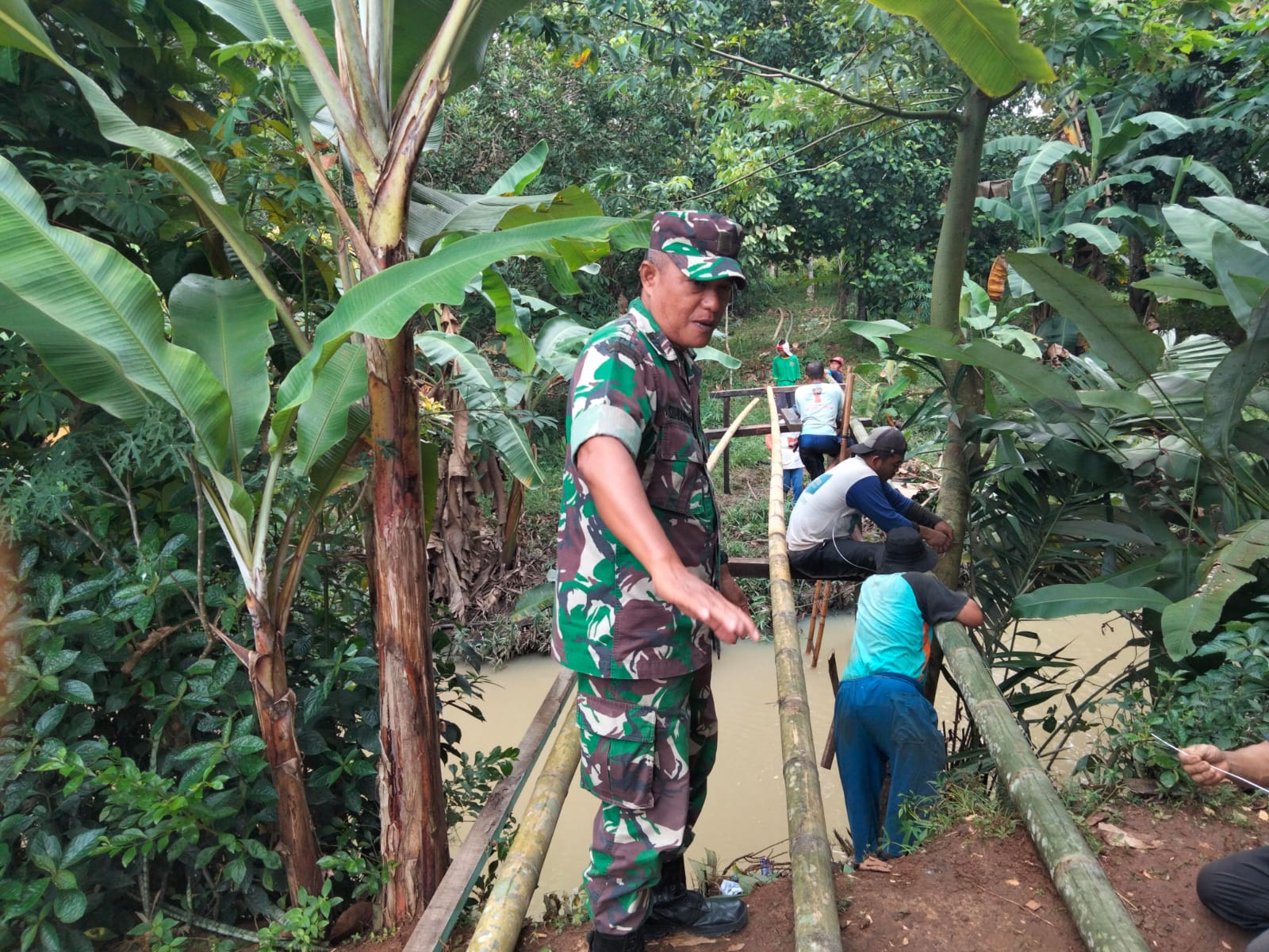 Permudah Akses, Babinsa Koramil 13/MK Bersama Masyarakat Bangun Jembatan Penghubung