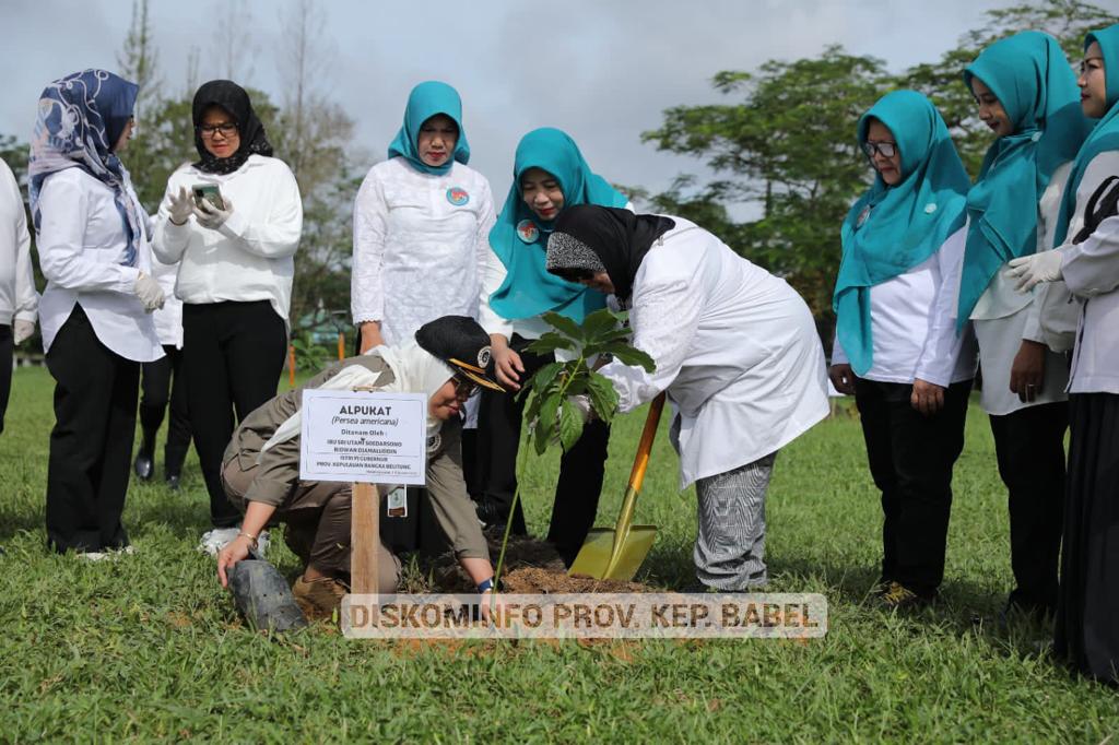 “Hari ini, bersama Ibu Iriana dan Ibu Wury, kita menanam 30 batang bibit Alpukat Roro dan membagikan 100 bibit Durian Namlung. Bibit yang sudah kita tanam ini kita jaga supaya bisa besar dan berbuah seperti yang kita harapkan,” ungkap Pj Ketua Tim Penggerak Pemberdayaan dan Kesejahteraan Keluarga (TP PKK) Kep. Babel, Sri Utami yang turut menghadiri acara.