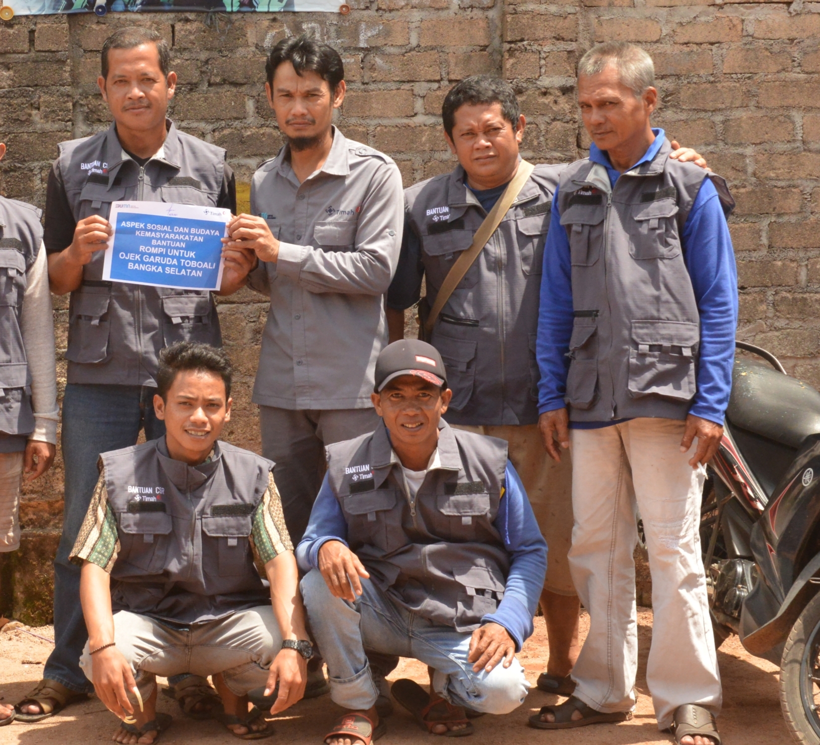 Ojek Garuda merupakan komunitas Ojek Pangkalan yang sudah lama melayani transportasi masyarakat. Untuk mendukung para anggota Ojek Garuda mencari rezeki, PT Timah Tbk menyerahkan bantuan rompi agar mereka mudah dikenali.