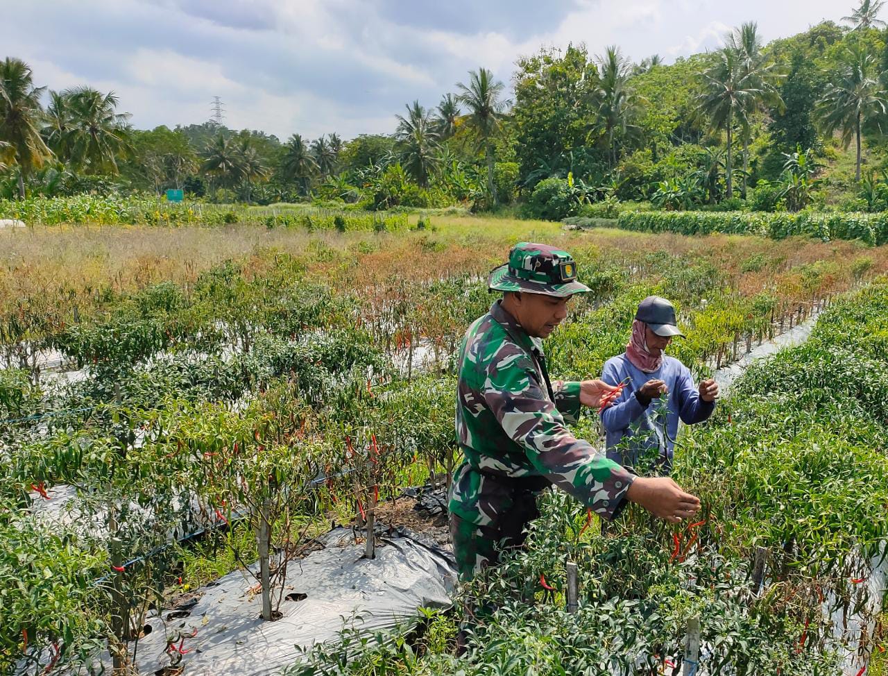 “Demikian juga dengan Babinsa Serda Ayip yang juga sama ditugaskan Koramil Cinangka sama melaksanakan Bintahwil kegiatan pendampingan kelompok tani harapan dengan tetap menerapkan prosedur prokes covid 19 di wilayah Desa Bulakan,” imbuhnya.