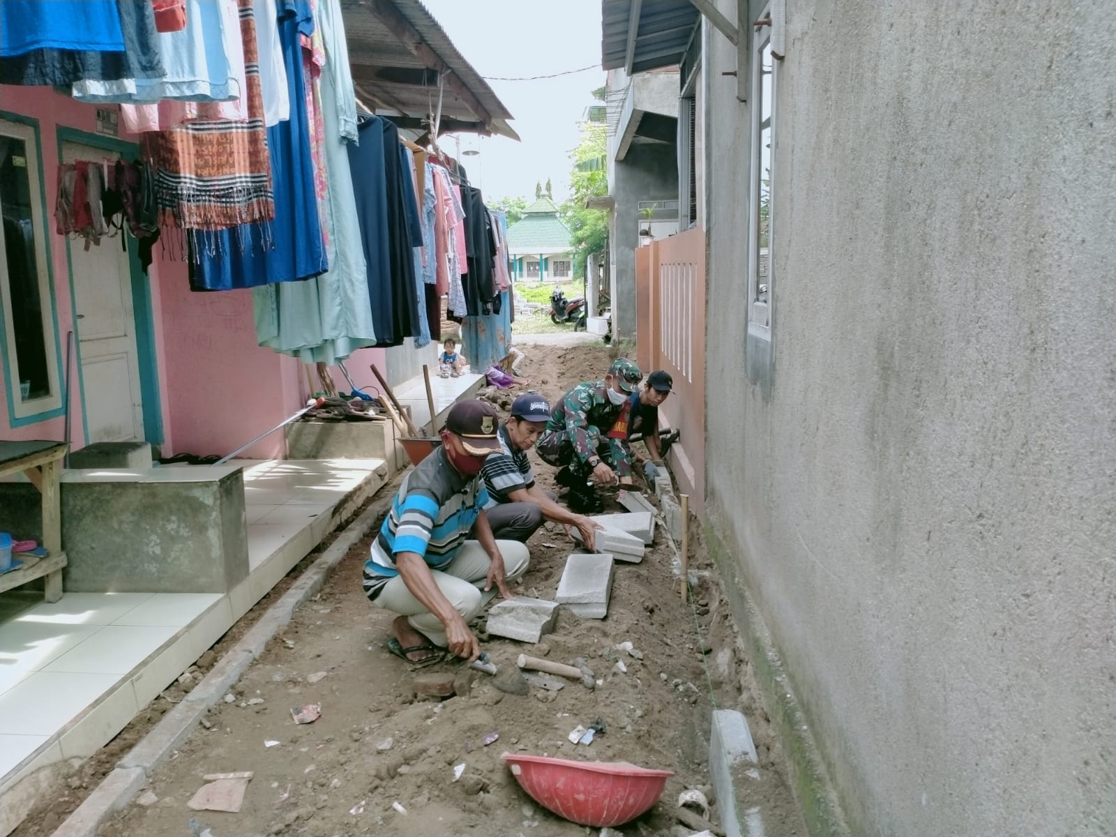 “Adapun Danramil 2303/Pulomerak memberi tugas pada anggotanya Babinsa Kelurahan Suralaya dan Kelurahan Ramanuju membantu pembangunan rumah warga dan membantu pemasangan conblok jalan di masing-masing wilayah Kelurahan,” urai Mayor Inf Moch Jaini.