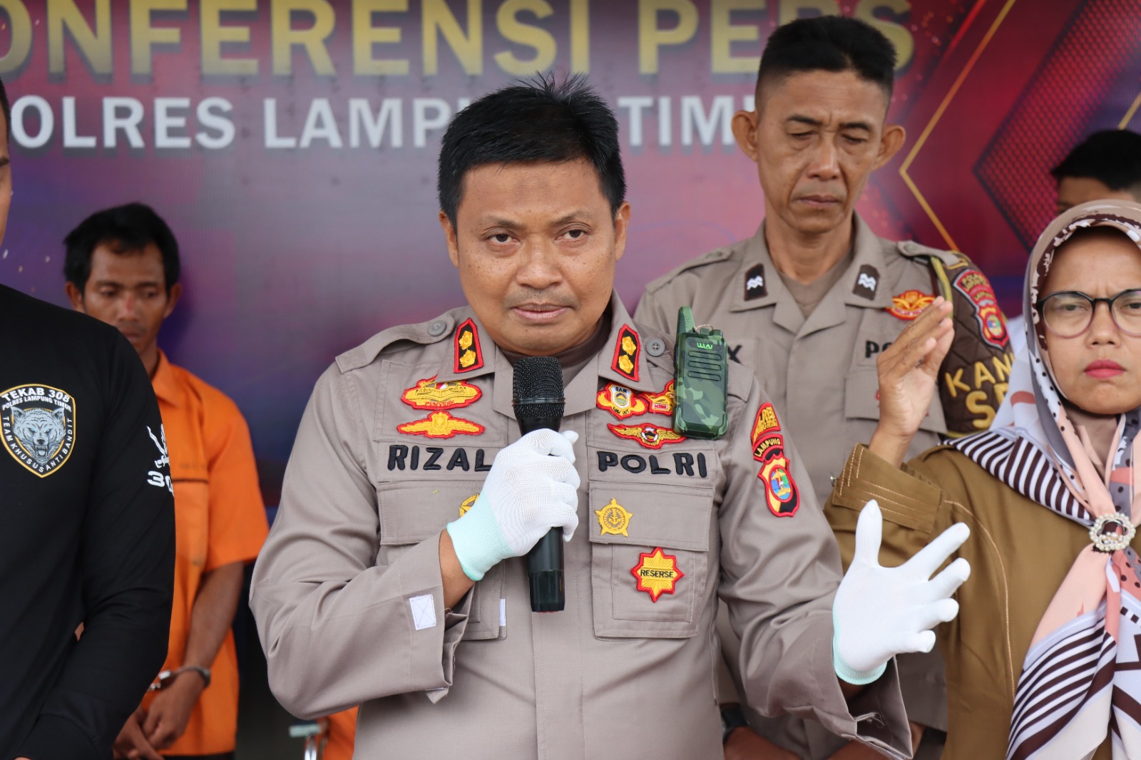 Kapolres Lampung Timur M Rizal Muchtar, didampingi Kasat Reskrim IPTU Johanes EP Sihombing, dan Kapolsek Braja Selebah IPTU Fridi, saat menggelar Konferensi Pers, pada Senin (27/2), menjelaskan bahwa inisial para tersangka yang berhasil diringkus adalah BS (37) warga Kecamatan Labuhan Ratu, IM (31) dan SA (41) warga Kecamatan Melinting.