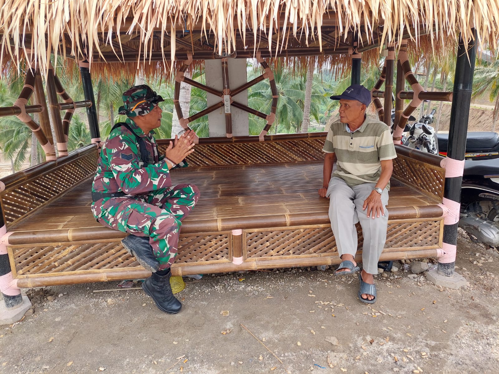 “Dimana Danramil 2306/Mancak memberi tugas pada anggotanya Babinsa Desa Balekambang dan Babinsa Desa Labuan untuk giat Komunikasi Sosial (Komsos) membahas tentang ketahanan pangan dan membahas tentang cuaca musim hujan di dua Desa Kecamatan Anyar,” tutur Kapten Inf Ahmad Yani.