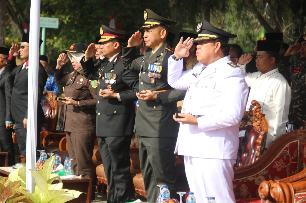 Komandan Kodim (Dandim) 0429/Lamtim Letkol Czi. Indra Puji Triwanto, SH hadiri upacara bendera dalam rangka peringatan hari jadi ke-59 Provinsi Lampung tahun 2023, Jum’at (17/3).