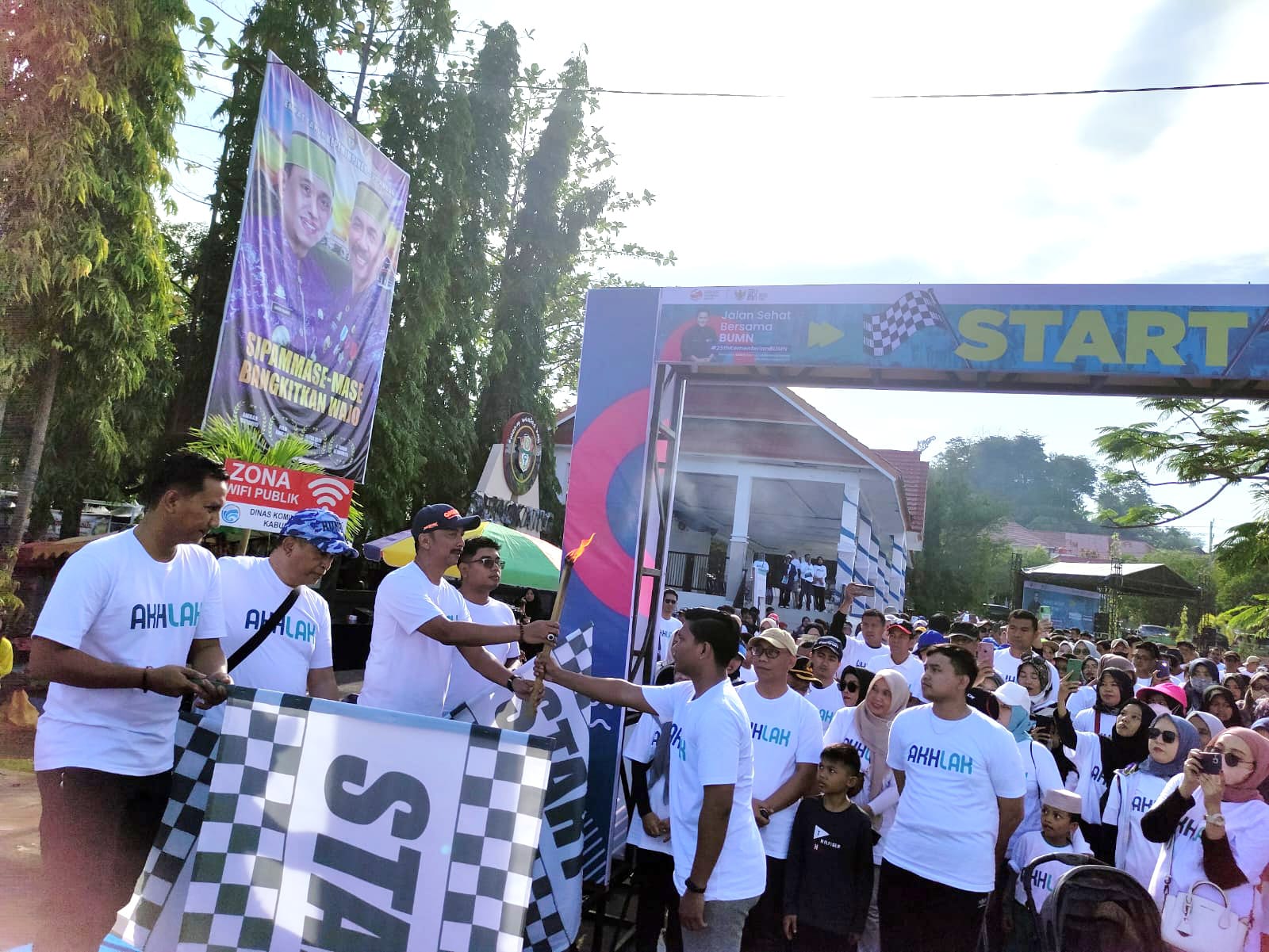 Kegiatan yang digelar Lapangan Merdeka, Sengkang ini berlangsung semarak. Setidaknya ratusan orang berbaju nuansa putih turut serta dalam jalan sehat bersama BUMN itu.