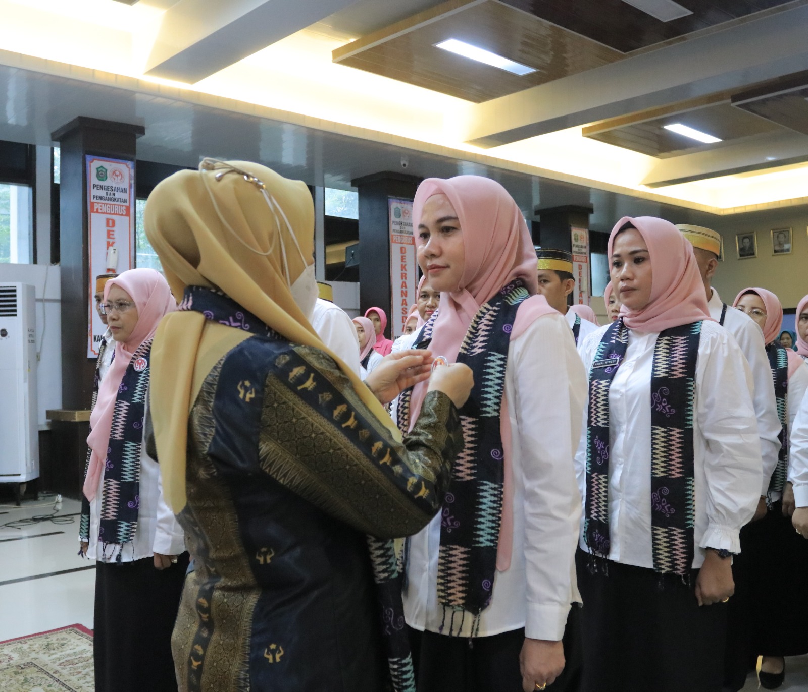 Penjabat Bupati Takalar Dr. Setiawan Aswad menyaksikan pelantikan Dekranasda Takalar yang diketuai oleh Dr. Sri Astuti Thamrin di Baruga I Manindori, Kantor Bupati Takalar.