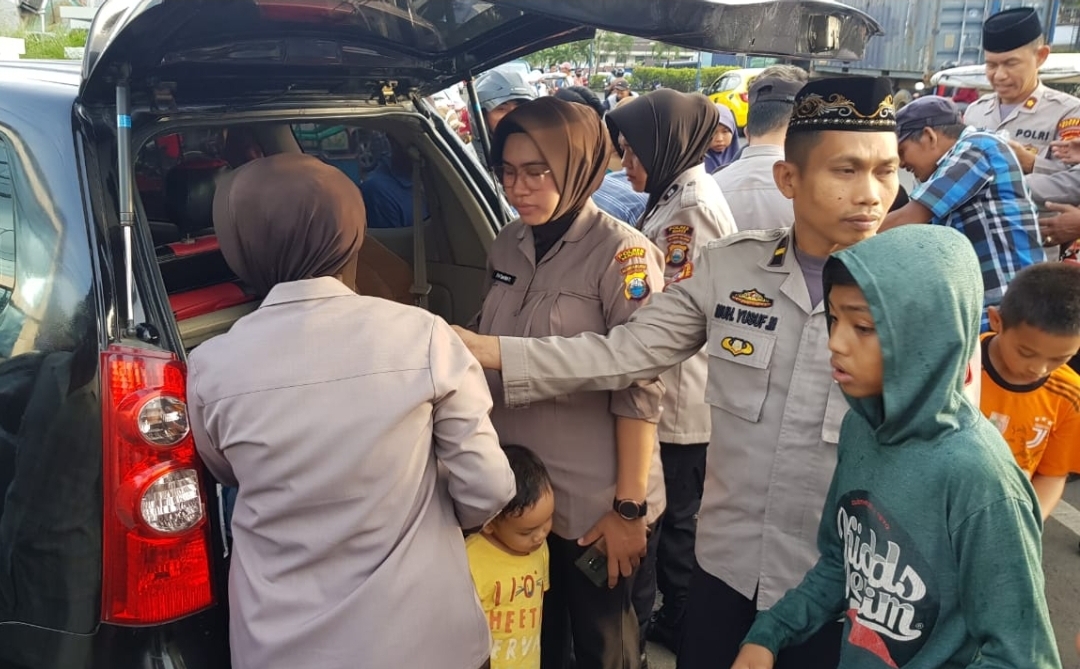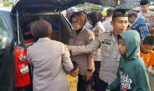 “Tamba tambai pak polisi,kalau bisa tiap hari kita bagikan yang seperti ini”kata Rauf yang sehari hari mangkal di sekitar lokasi.(ysR).