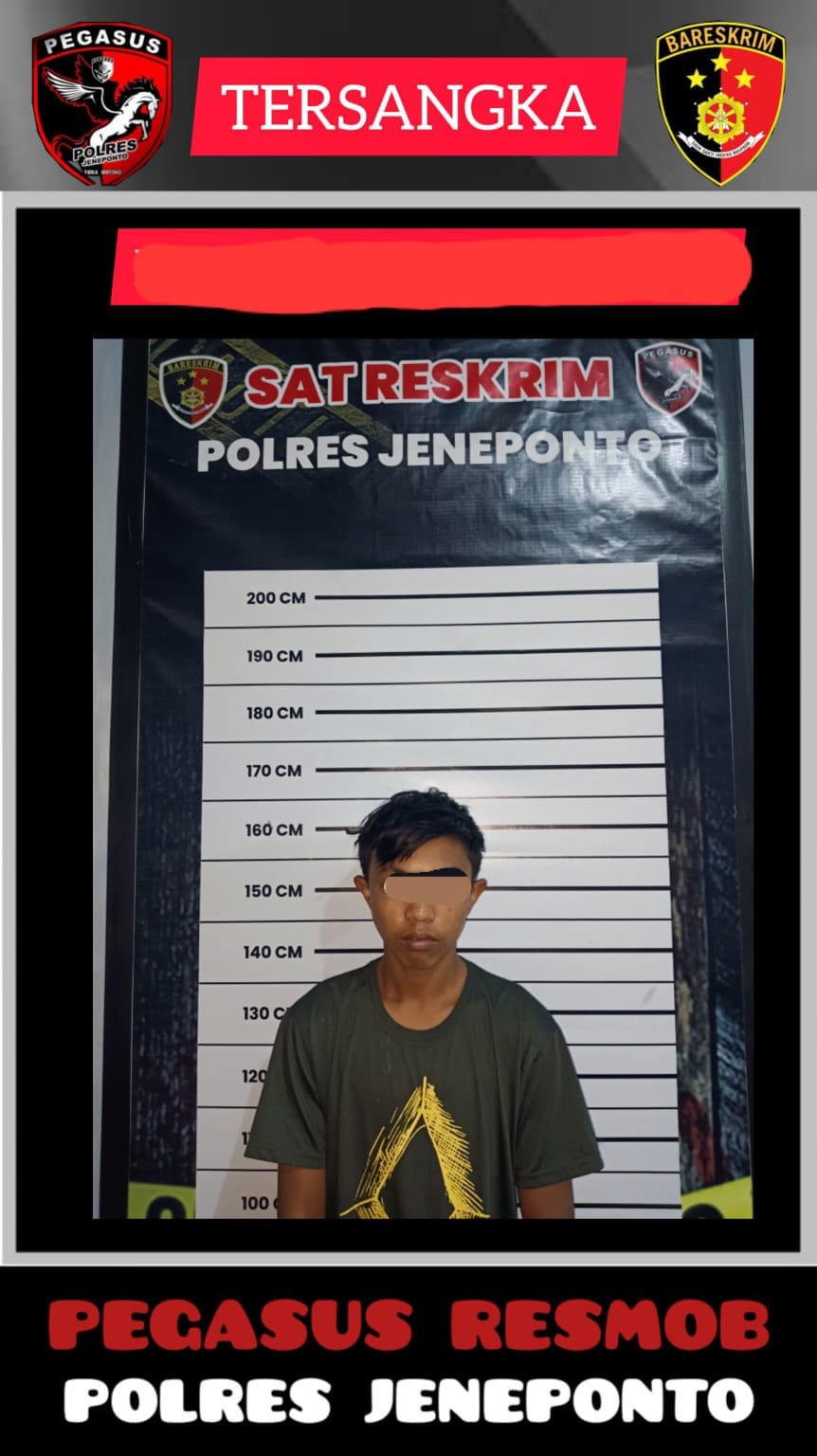 Tak menunggu lama Aipda Abd Rasyad bersama tim Pegasus Resmob Polres Jeneponto sigap menuju ke lokasi terduga pelaku dan berhasil mengamankan terduga buronan pelaku (Lel. RH,16 tahun) ditempat persembunyiannya tanpa ada perlawanan.