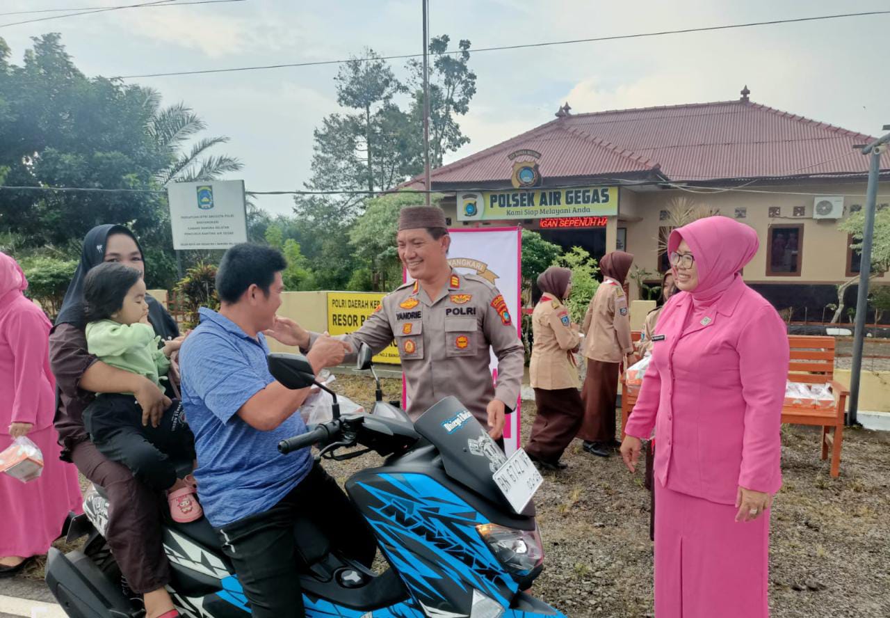 Kapolsek Air Gegas, AKP Yandrie C Akip menyebut, sebanyak 100 box Takjil siap saji dan minuman dibagikan secara geratis ke penggunaan jalan yang melintas di daerah itu.
