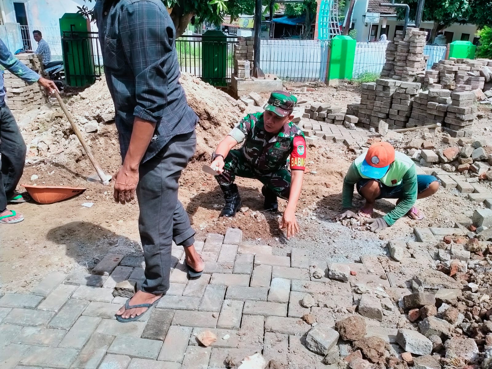 “Adapun Danramil 2303/Pulomerak memberi tugas pada anggotanya Babinsa Kelurahan Purwakarta dan Kelurahan Kotabumi giat Karbak membantu pemasangan conblok jalan dan membantu pembangunan tembok penahan tanah di masing-masing wilayah Kelurahan,” urai Mayor Inf Moch Jaini.