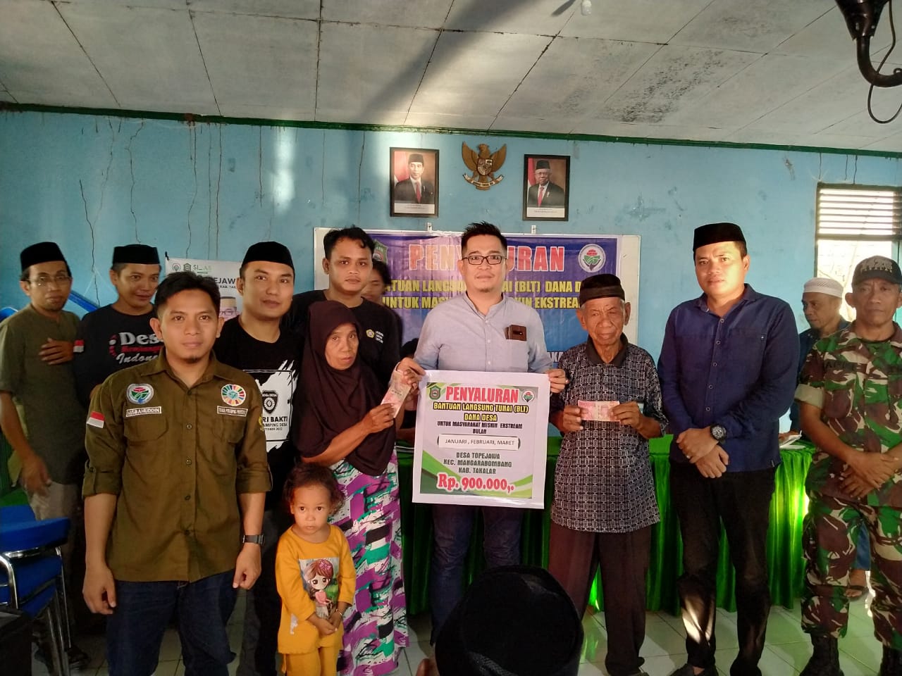 “Kepala Desa Topejawa, Arman S. IP, yang akrab disapa Daeng Siantang membuka kegiatan menyampaikan Bahwa untuk tahun 2023 Pemerintah Desa Topejawa menganggarkan Dana Desa untuk BLT Kemiskinan Ekstrem sebanyak Rp 97.200.000 selama 12 bulan jadi untuk tahap pertama yakni bulan, Januari, Februari dan Maret kepada 27 Keluarga Penerima Manfaat (KPM) BLT Kemiskinan ekstrim dengan jumlah yang diterima sebesar Rp 900.000,” jelasnya.