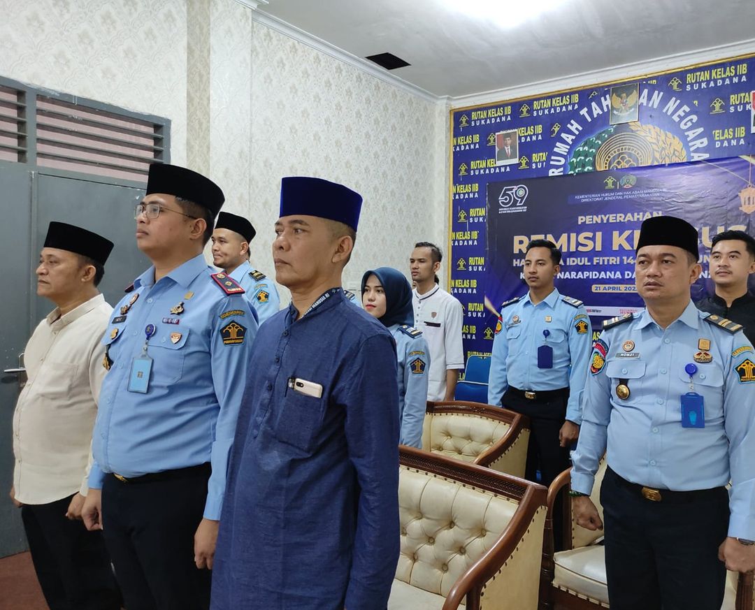 Rutan Kelas IIB Sukadana, Kabupaten Lampung Timur melaksanakan acara pemberian Remisi Khusus Idul Fitri 1444H/2023 kepada 239 orang Warga Binaan Pemasyarakatan (WBP), Sabtu (22/4/2023).