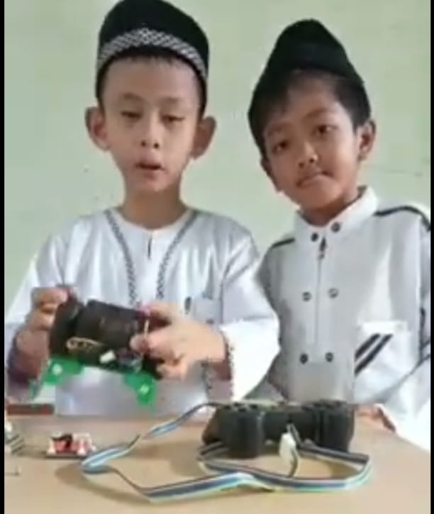 Selanjutnya tim kedua dengan anggota M Azzam Al Faqih dan Naufal Ahza Mukhtarullah yang mengusung tema “Robot Pencapit Sampah”.