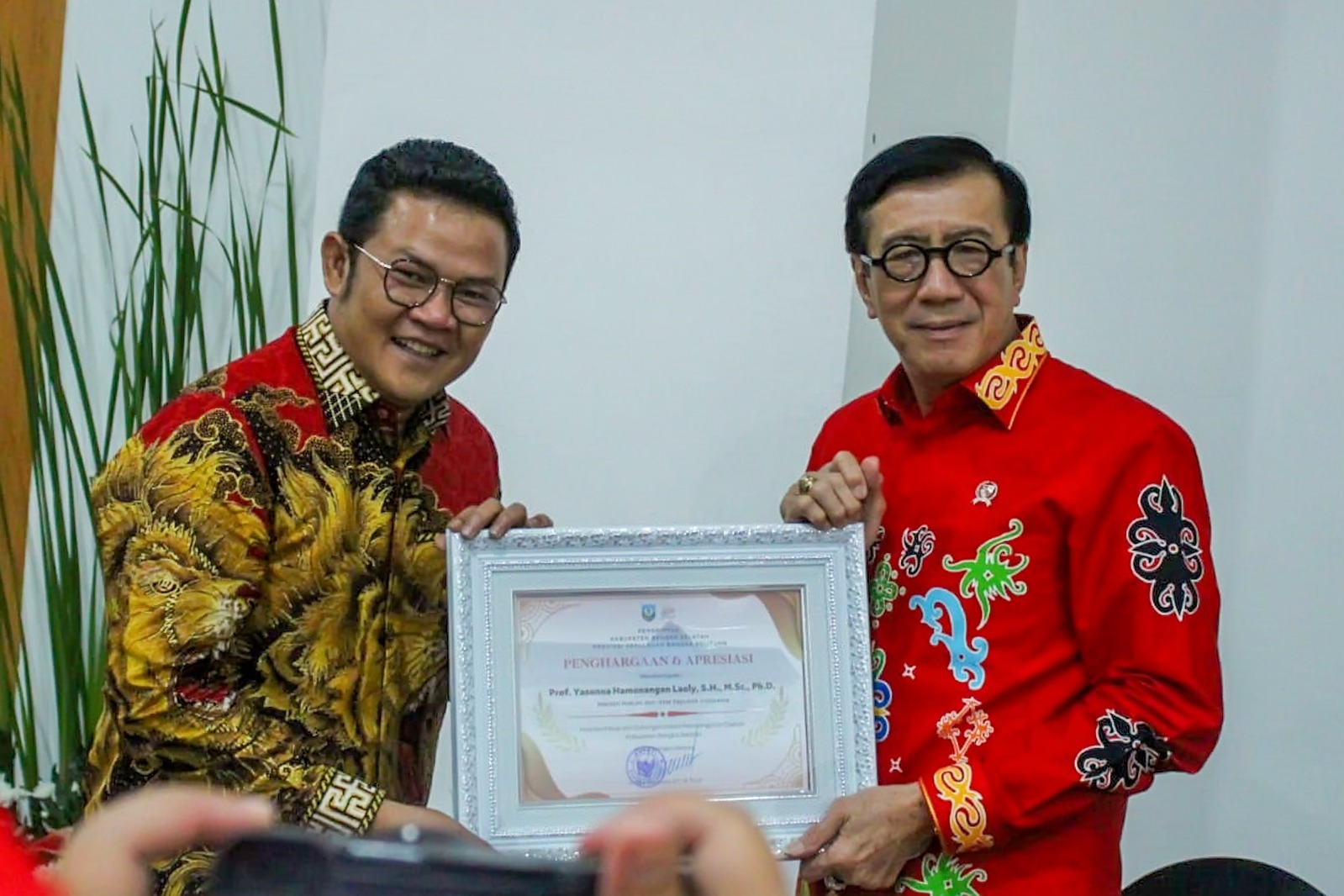 Penghargaan tersebut, diterima langsung oleh Bupati Bangka Selatan, Riza Herdavid. Hal itu berkaitan dengan kebijakan dukungan Pemerintah Kabupaten Bangka Selatan untuk percepatan pembangunan dan pelayanan publik oleh Kemenkumham RI.