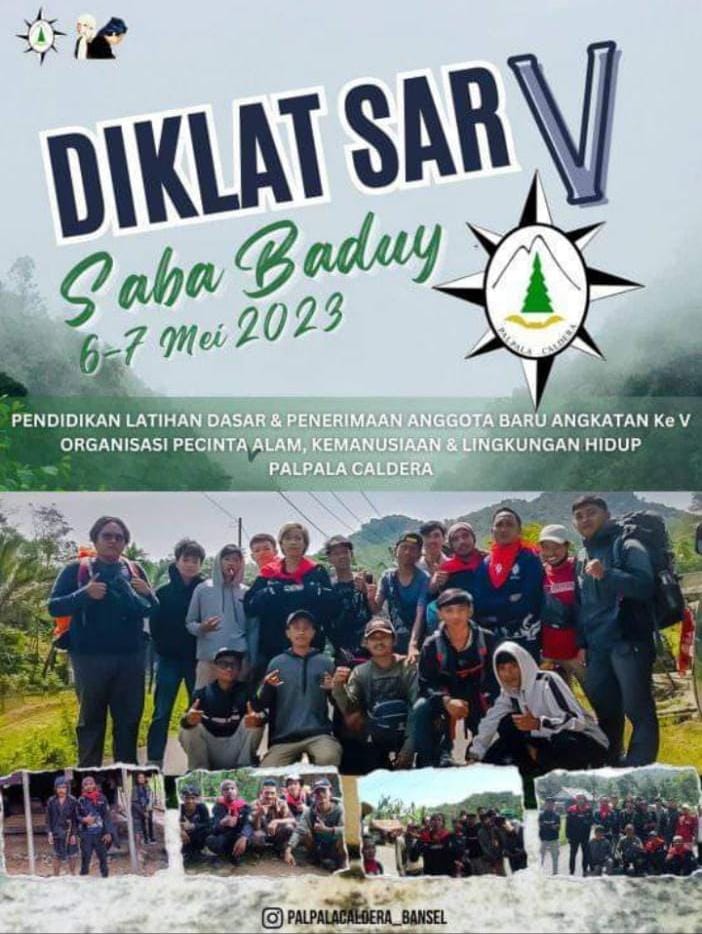 Palpala Caldera Gelar Diklatsar ke 5 di Baduy, dan Lingkungan Hidup (Palpala Caldera) menggelar Pendidikan Latihan Dasar (Diklatsar) yang ke 5 (lima) untuk anggota baru, Saba Baduy dengan rute perjalanan Malingping – Baduy, Sabtu s.d Minggu (06 – 07 Mei 2023),
