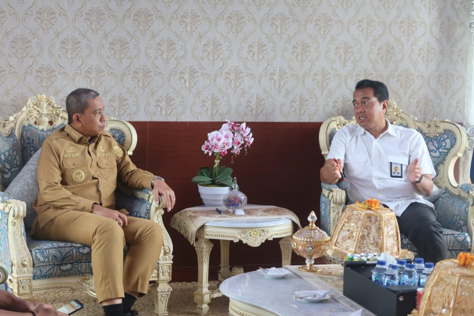 SEKINDO.ID, WAJO – Bupati Wajo, Amran Mahmud menerima kunjungan Kepala Balai Besar Wilayah Sungai Pompengan- Jeneberang (BBWS-PJ), Djaya Sukarno bersama jajaran di Ruang Kerjanya, Selasa (9/5/2023).