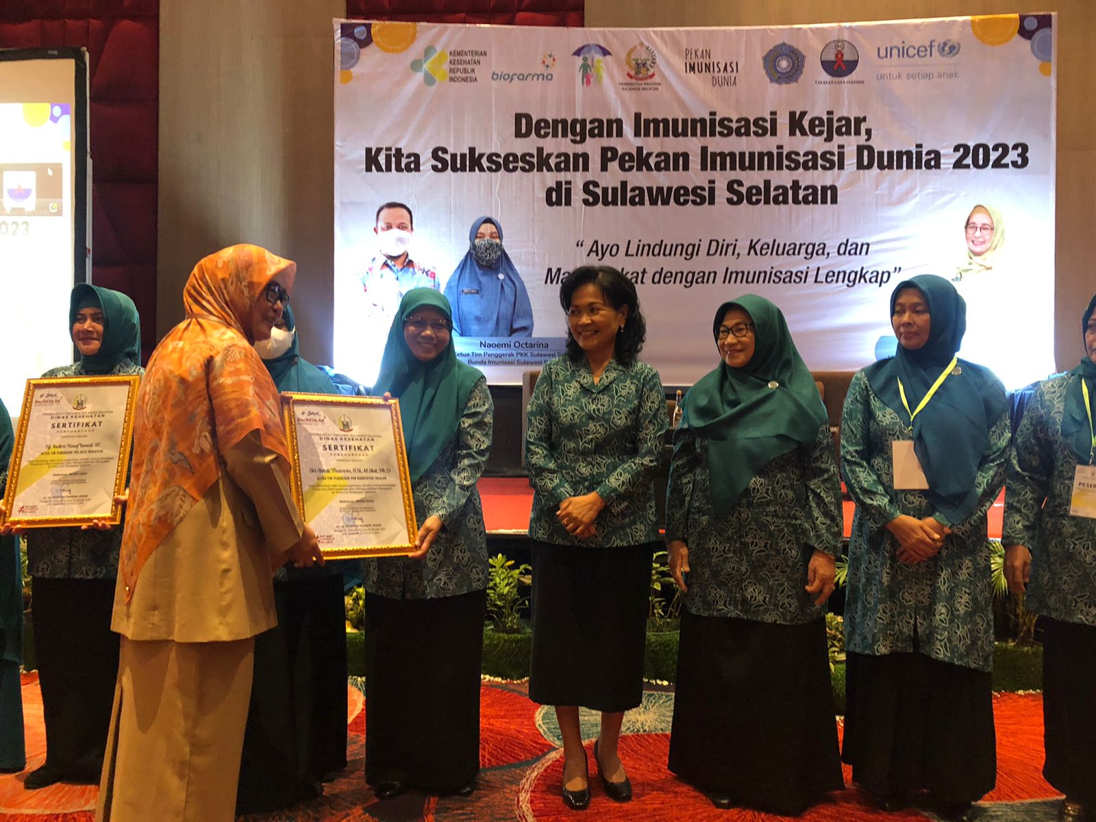 Penghargaan ini diberikan dalam pencanangan Pekan Imunisasi Dunia Provinsi Sulawesi Selatan yang dilaksanakan oleh Dinas Kesehatan Sulawesi Selatan di Hotel Gammara, Selasa (9/5/2023).