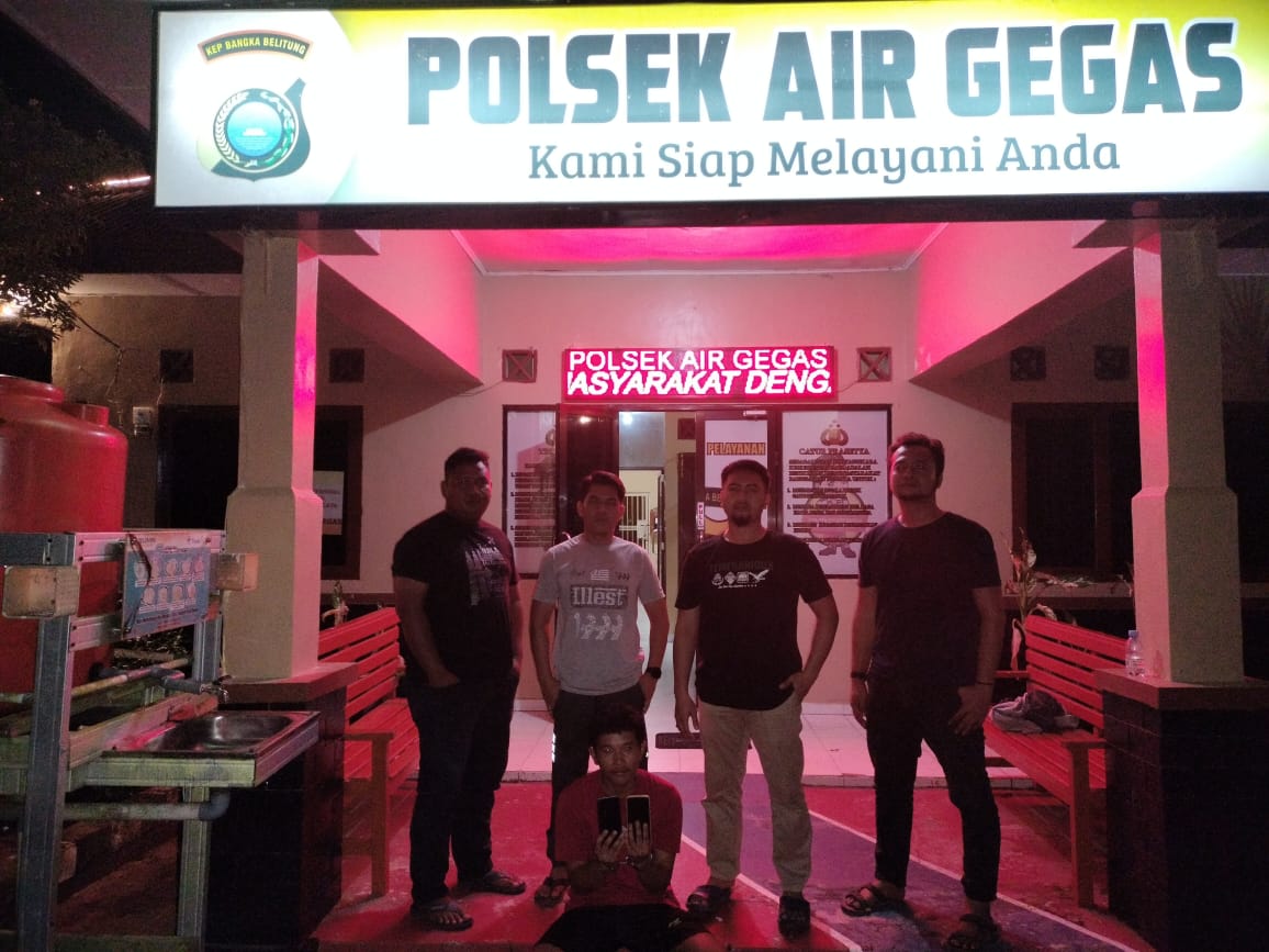 Tim Opsnal Reskrim Polisi Sektor (Polsek) Air Gegas, mengamankan Muhamat Sultan alias Muhamat (20) saat berada di depan Kantor Desa Sidoharjo, Kecamatan Air Gegas, Kabupaten Bangka Selatan, pada Kamis (18/5/2023) sore.
