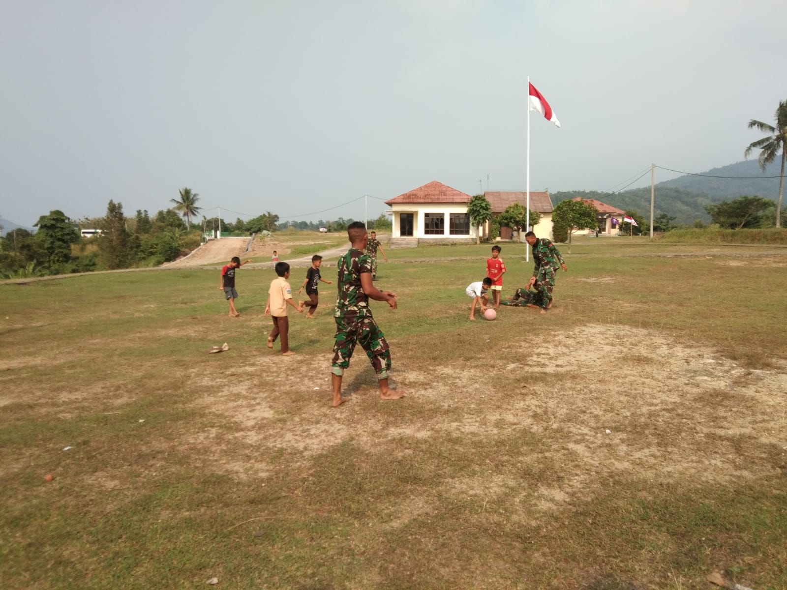 Kedekatan satgas TMMD dengan anak-anak di lokasi memberikan motivasi tersendiri. Bermodalkan sebuah bola, tidak mengurangi semangat mereka untuk bermain.