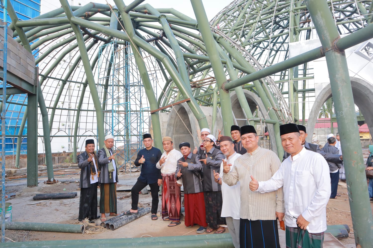 Sekda kota Pangkalpinang Mie Go tinjau langsung kelapangan hasil dari pembangunan masjid kubah timah, saat ini sudah terpantau pembangunan sekitar 54 persen hingga saat ini.