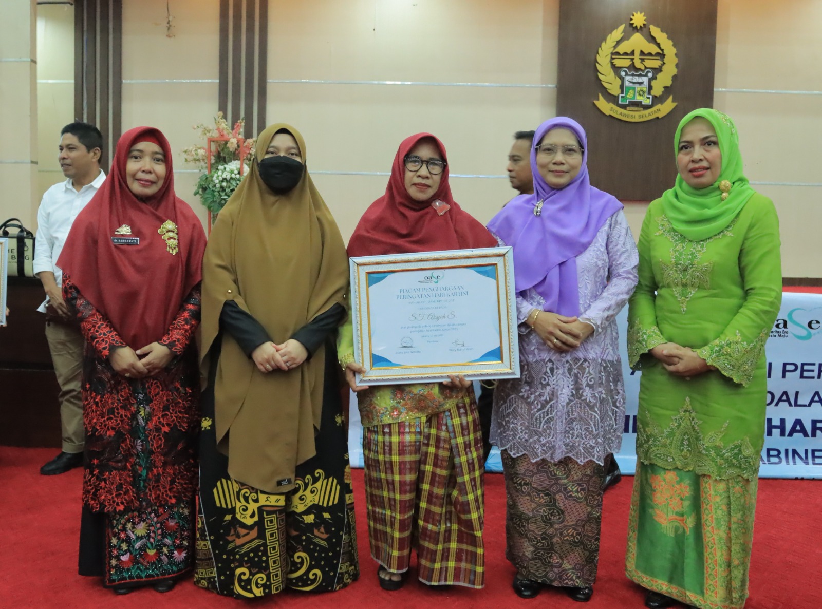 Sebanyak 24 perempuan Berjasa dan Berprestasi untuk Daerah Kabupaten/Kota di Prov. Sulsel menerima penghargaan dari Gubernur Prov. Sulsel sebagai perempuan inspiratif dari Organisasi Aksi Solidaritas Era Kabinet indonesia Maju (OASE-KM).