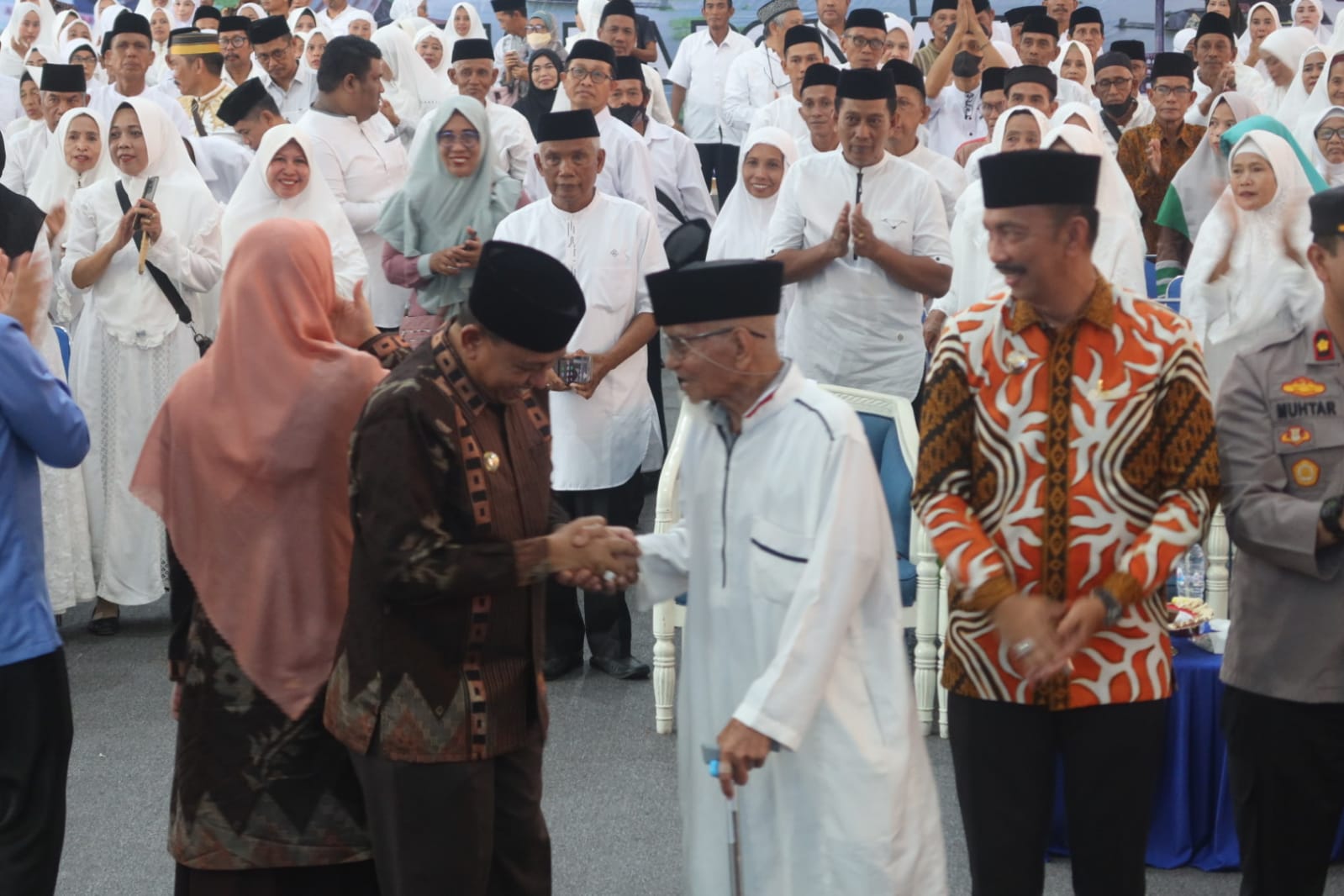 Bupati Wajo Amran Mahmud melepas secara resmi keberangkatan JCH Kabupaten Wajo di Ruang Pola Kantor Bupati, Kamis (1/6/2023).