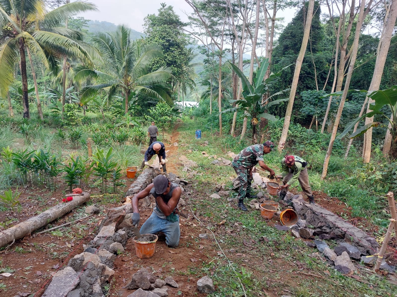 “Adapun Babinsa Desa Sindang Mandi yang mendapatkan tugas dari Danramil Anyar memaparkan dalam melaksanakan giat Karbak pemasangan pondasi rumah di wilayah Desa Sindang Mandi,” papar Babinsa Sertu Fatullah.