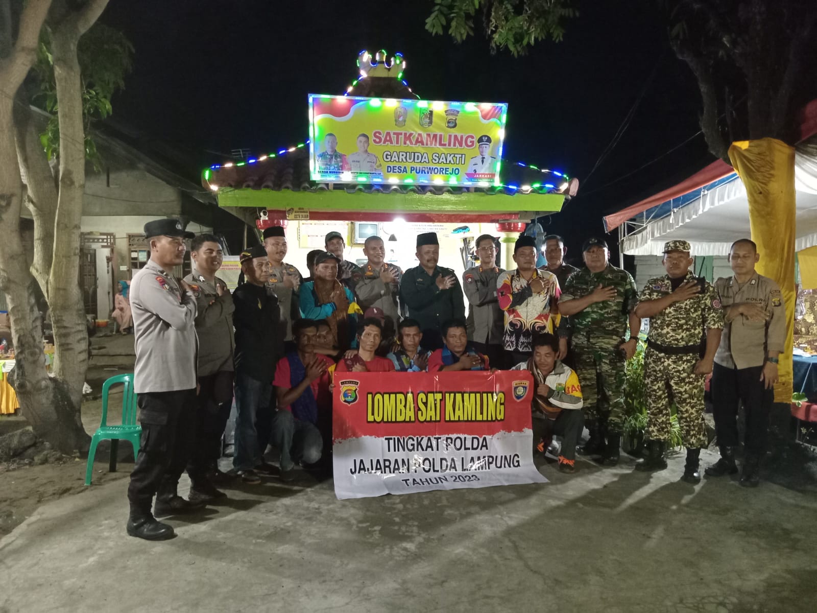 Perlombaan Satuan Keamanan Lingkungan (Satkamling) tingkat Polda berlangsung di Poskamling Desa Purworejo, Kecamatan Pasir Sakti, Kabupaten Lampung Timur, Jum’at Malam, (2/6/2023).