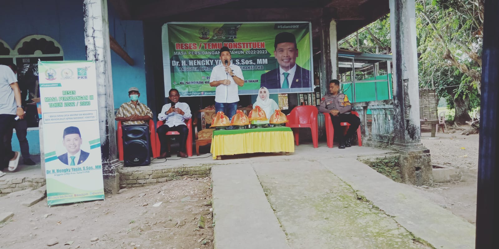TAKALAR, Anggota Dewan Perwakilan Rakyat Daerah (DPRD) Provinsi Sulawesi-Selatan Fraksi PKB, Dr H. Hengky Yasin S. Sos MM melakukan reses atau temu Konstituen masa Persidangan III tahun 2022/2023 di Kelurahan, Pa’bundukang, Kecamatan Polongbangkeng Selatan (Polsel), Minggu (04/06/2023).