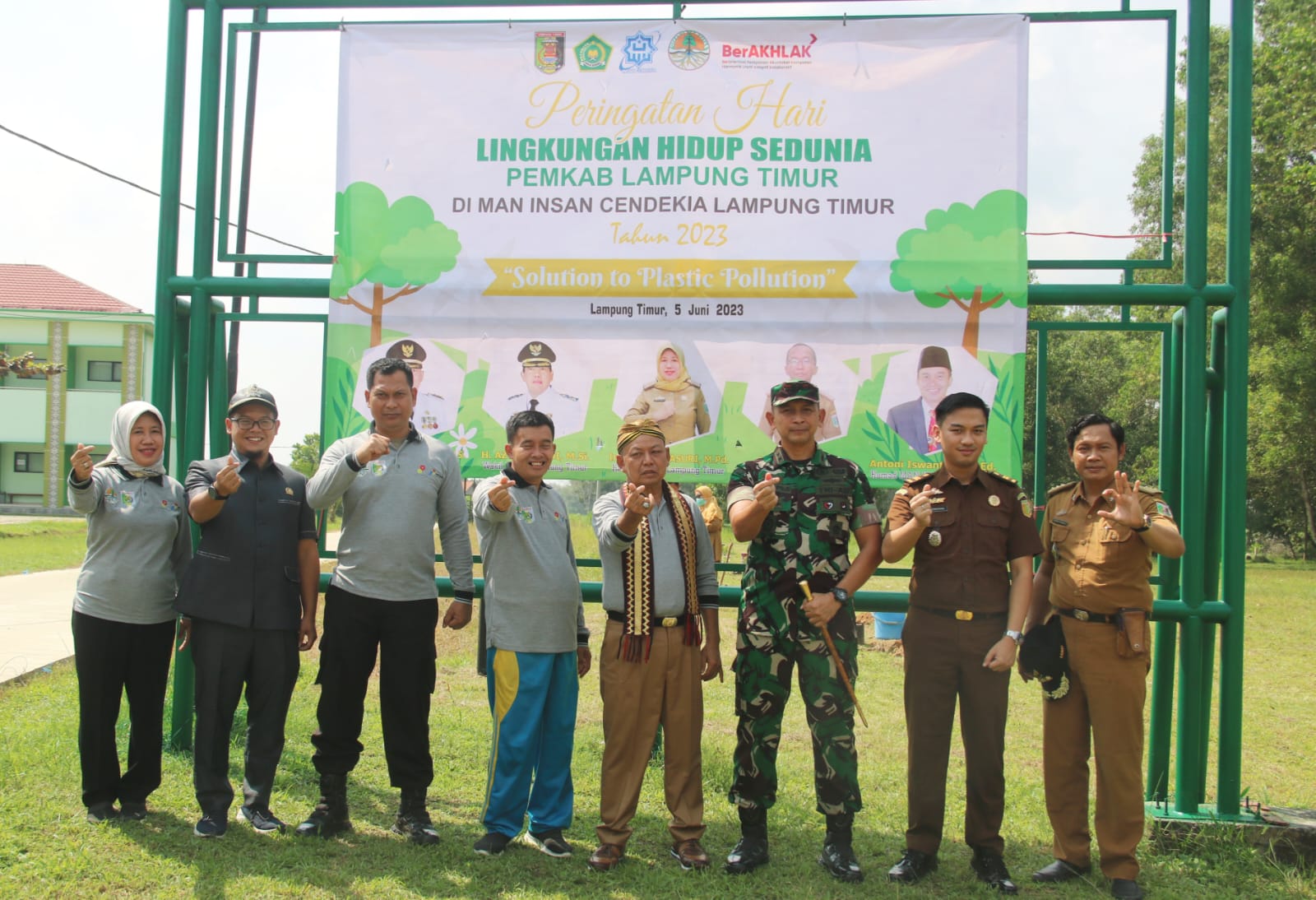 Peringatan Hari Lingkungan Hidup Sedunia ditandai dengan penyerahan dan penanaman pohon secara simbolis oleh jajaran Forkopimda Lampung Timur.