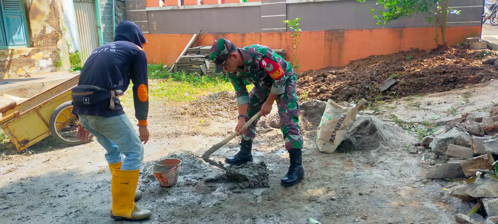 Sekilasindonesia.id, || CILEGON – Babinsa Koramil 2303/Pulomerak Kodim 0623/Cilegon giat Karbak membantu pembuatan pangkalan dan membantu pemasangan conblok di wilayah Kalurahan Mekarsari Kecamatan Pulomerak dan Kelurahan Kebondalem Kecamatan Purwakarta Kota Cilegon Banten, Kamis (08/06/2023).
