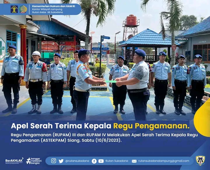 Regu Pengamanan (RUPAM) III dan RUPAM IV Melakukan Apel Serah Terima Kepala Regu Pengamanan (ASTEKPAM) Siang. Sabtu, (10/6/2023).