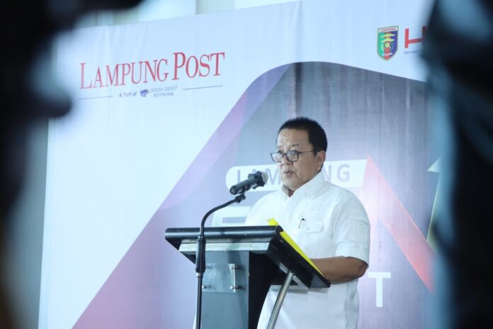 Gubernur Arinal Djunaidi menjadi Keynote Speaker pada acara Lampung Economic Summit 2023 yang diselenggarakan oleh Harian Umum Lampung Post, di Hotel Novotel, Rabu (14/06/2023).