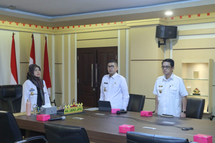 Wakil Gubernur Lampung Chusnunia mengikuti Rapat Koordinasi Nasional Pengawasan Intern Pemerintah Tahun 2023 dengan tema ‘Kawal Produktivitas Untuk Transformasi Ekonomi’ secara virtual bertempat di Ruang Sakai Sambayan, Rabu (14/06/2023).