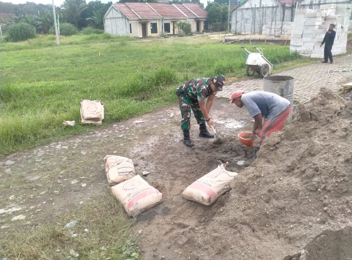 “Adapun Babinsa Babinsa Kelurahan Kepuh yang mendapatkan tugas dari Danramil Ciwandan menuturkan untuk melaksanakan giat Karbak dalam rangka pembangunan rumah warga di wilayah Kelurahan Kepuh,” urai Babinsa Sertu Sunardi.