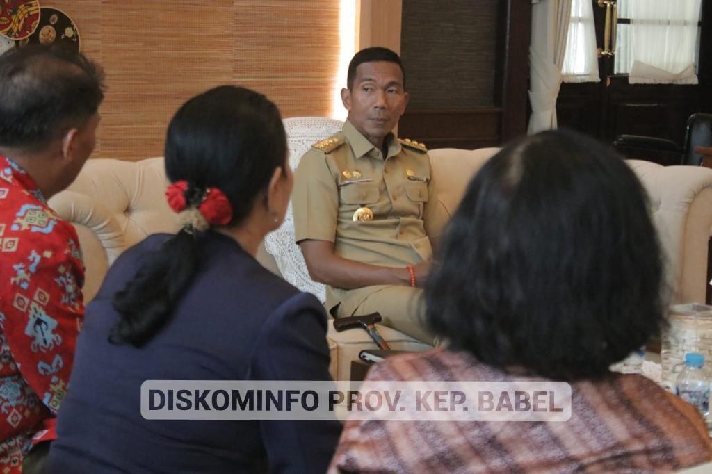 Sang Ibu, Ernita Simanjuntak mengadukan kondisi anaknya mengalami cacat pada matanya kepada Penjabat (Pj) Gubernur Kepulauan Bangka Belitung (Kep. Babel) Suganda Pandapotan Pasaribu disela-sela Audiensi dengan Jemaat HKBP Sungailiat di Rumah Dinas Gubernur, Selasa (20/6).